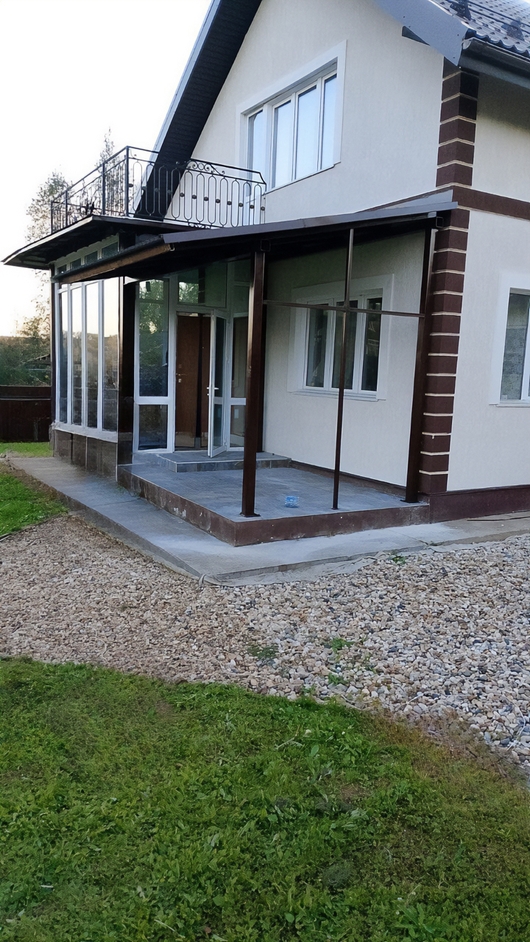 Односкатный навес-пристройка к дому из профнастила Арт-697
